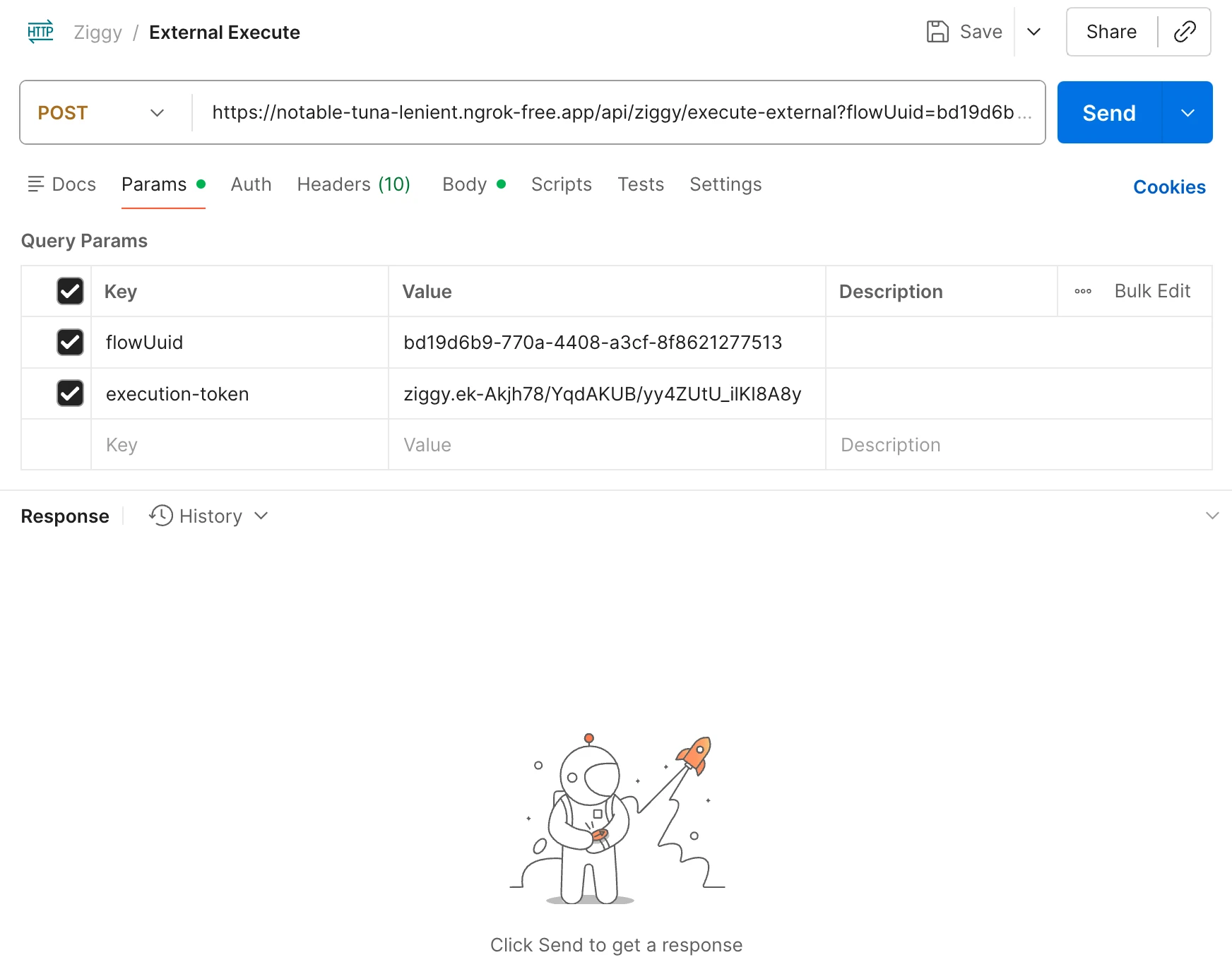 An Ziggy flow that is triggered manually, by a webhook, through an API call.